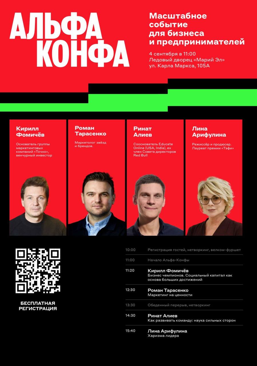 4 сентября Альфа-банк проводит знаменательное событие АЛЬФА-КОНФУ для бизнеса и предпринимателей в Йошкар-Оле
