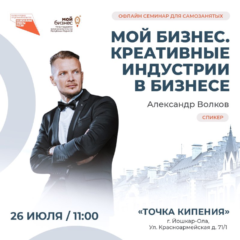 Семинар состоится 26 июля в г. Йошкар-Ола, «Точка кипения», ул. Красноармейская д. 71/1, где участники познакомятся друг с другом и получат полезную информацию.