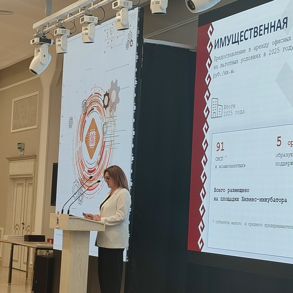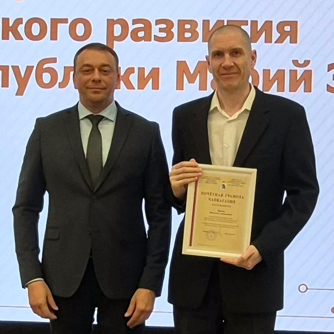 Завершилось мероприятие торжественной церемонией. Глава республики Юрий Зайцев вручил почетные грамоты Правительства и благодарности отличившимся работникам министерства. Два сотрудника "Бизнес-инкубатора РМЭ" отмечены грамотами от Минэкономразвития РМЭ. Председатель Госсобрания Михаил Васютин также отметил лучших представителей институтов поддержки бизнеса и промышленности.