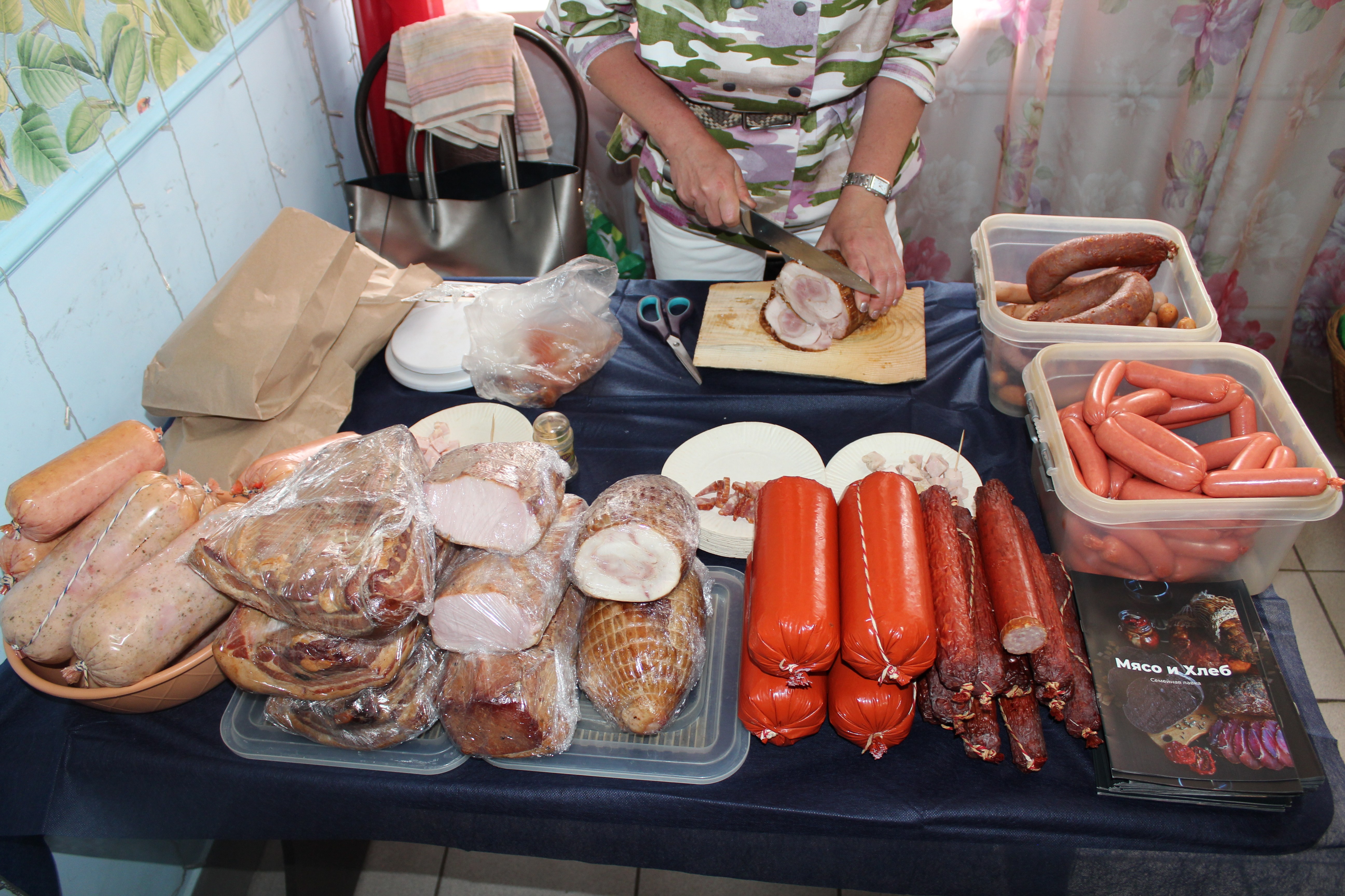 На мини-ярмарке были представлены натуральные продукты от фермеров региона: разнообразные мясные и колбасные изделия, молочная продукция, мёд, хлеб без дрожжей на натуральной закваске, сушеное мясо с высоким содержанием белка, огурчики из теплицы.
